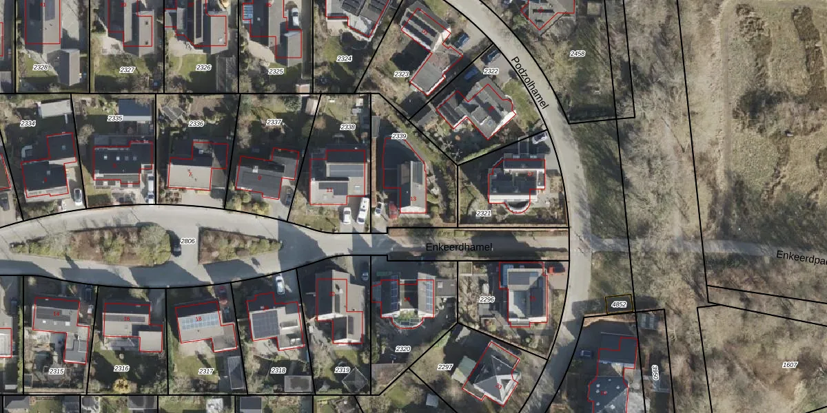 Het perceel waarop Enkeerdhamel 13 staat heeft een oppervlakte van 522 m². Dit is een groot perceel. De perceeloppervlakte wordt geregistreerd door het Kadaster. Gedetailleerde informatie over de maten van dit perceel kunt u vinden in het rapport Kadastrale kaart met maatvoering van Enkeerdhamel 13.