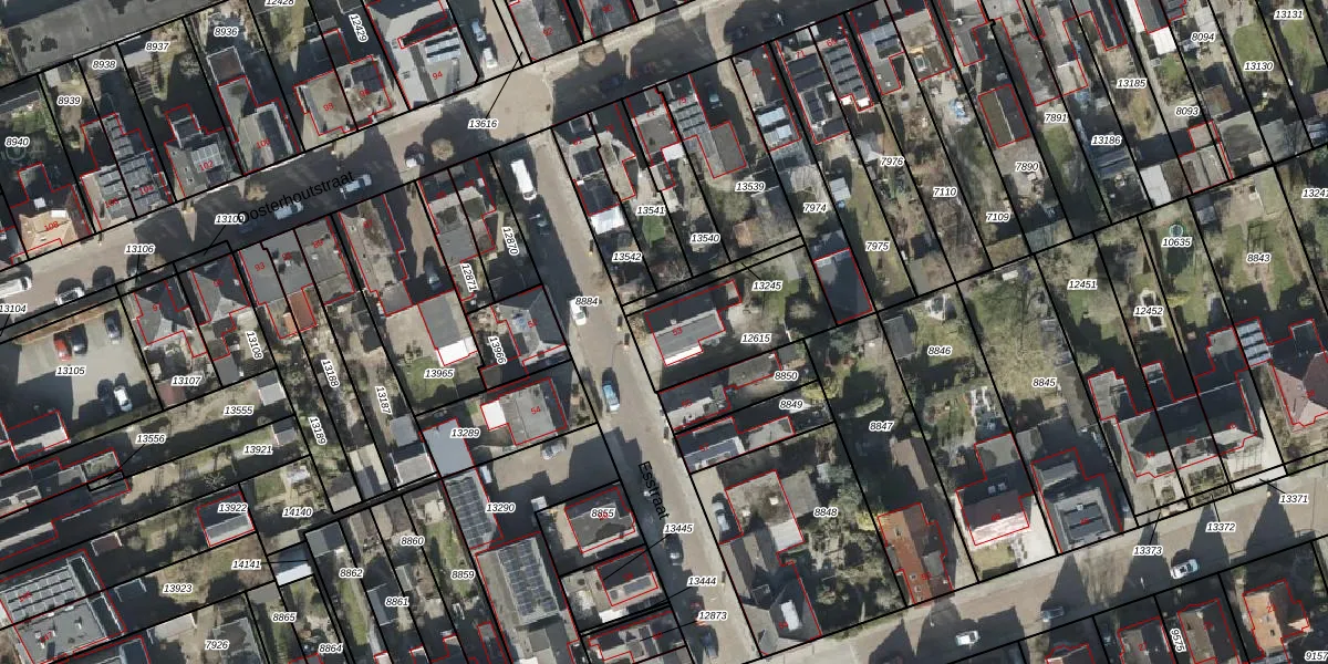 Het perceel waarop Esstraat 53 staat heeft een oppervlakte van 379 m². Dit is een groot perceel. De perceeloppervlakte wordt geregistreerd door het Kadaster. Gedetailleerde informatie over de maten van dit perceel kunt u vinden in het rapport Kadastrale kaart met maatvoering van Esstraat 53.
