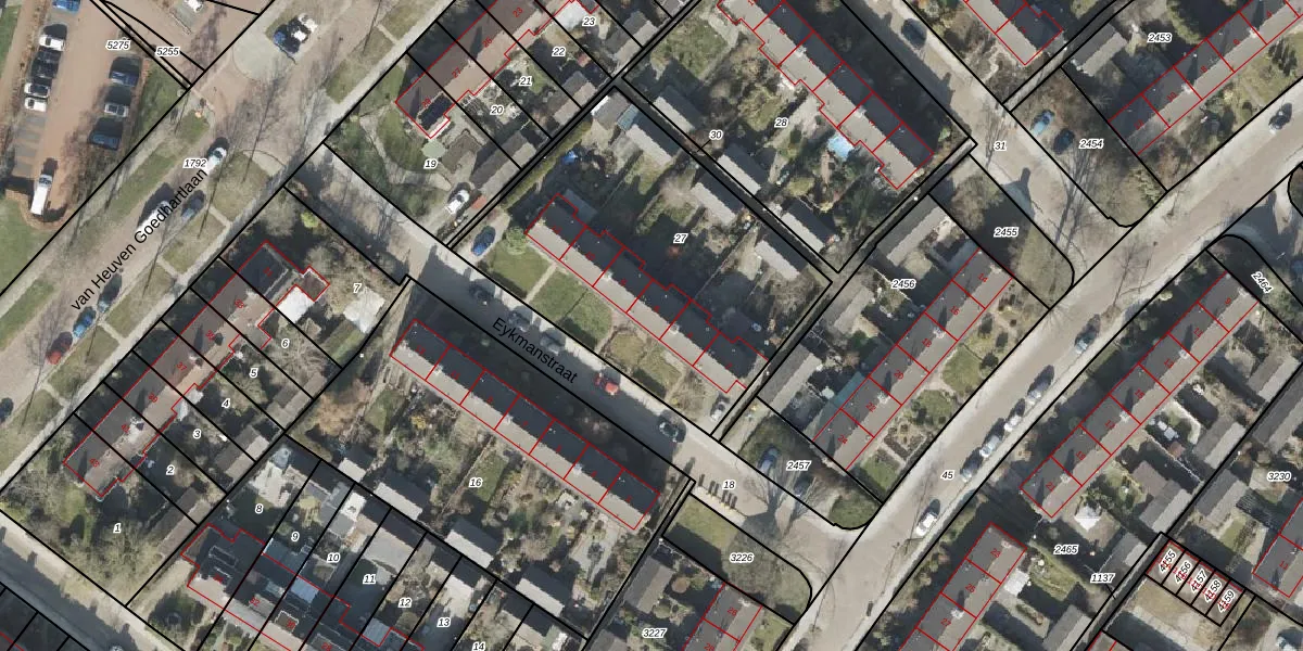 Het perceel waarop Eykmanstraat 6 staat heeft een oppervlakte van 1527 m². Dit is een zeer groot perceel. De perceeloppervlakte wordt geregistreerd door het Kadaster. Gedetailleerde informatie over de maten van dit perceel kunt u vinden in het rapport Kadastrale kaart met maatvoering van Eykmanstraat 6.