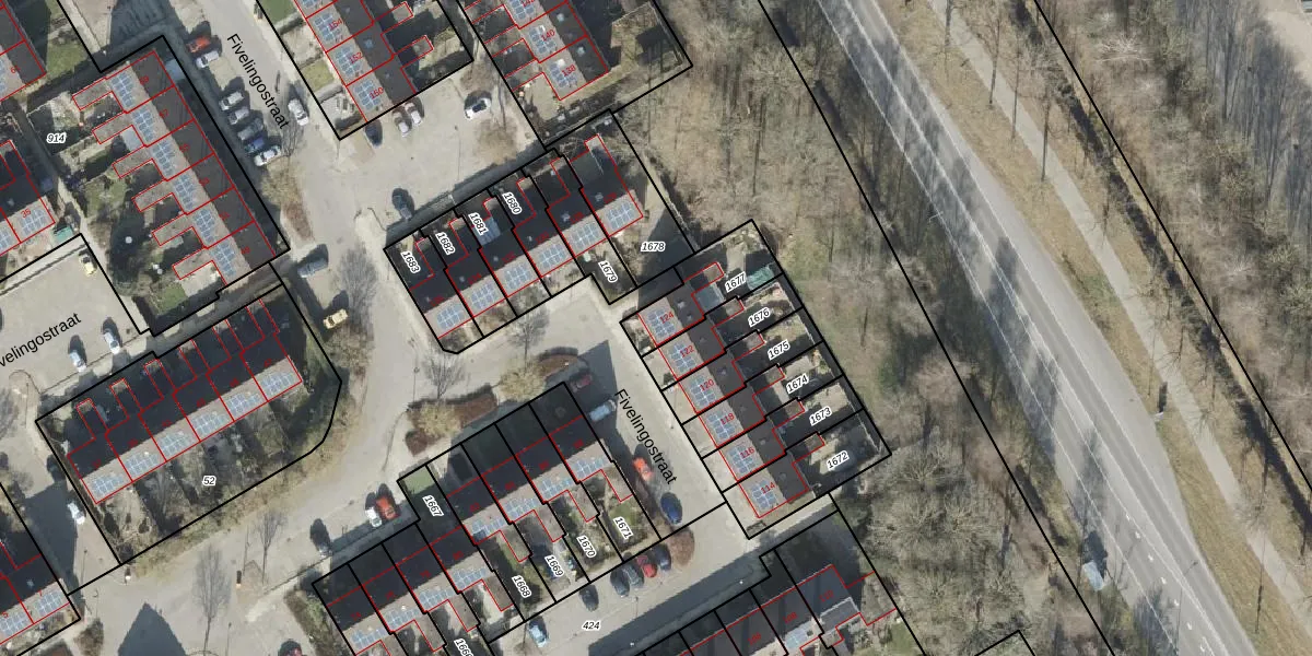 Gebruik de zoekbalk of klik op een perceel voor informatie over de adressen binnen dit perceel.