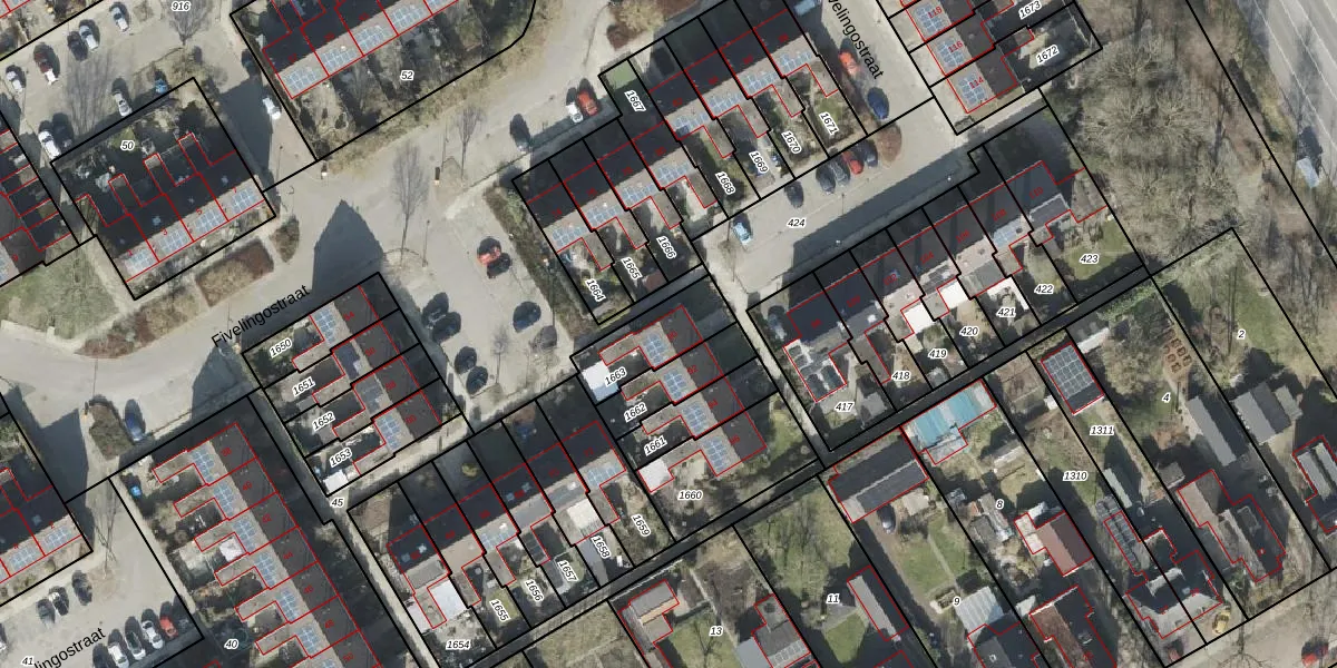 Het perceel waarop Fivelingostraat 90 staat heeft een oppervlakte van 199 m². Dit is een middelgroot perceel. De perceeloppervlakte wordt geregistreerd door het Kadaster. Gedetailleerde informatie over de maten van dit perceel kunt u vinden in het rapport Kadastrale kaart met maatvoering van Fivelingostraat 90.