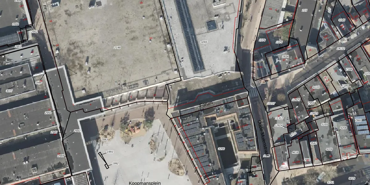 Het perceel waarop Forum 105 staat heeft een oppervlakte van 2756 m². Dit is een zeer groot perceel. De perceeloppervlakte wordt geregistreerd door het Kadaster. Gedetailleerde informatie over de maten van dit perceel kunt u vinden in het rapport Kadastrale kaart met maatvoering van Forum 105.