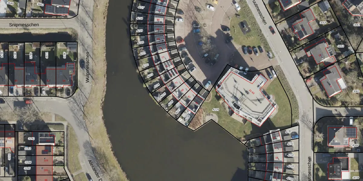 Gebruik de zoekbalk of klik op een perceel voor informatie over de adressen binnen dit perceel.