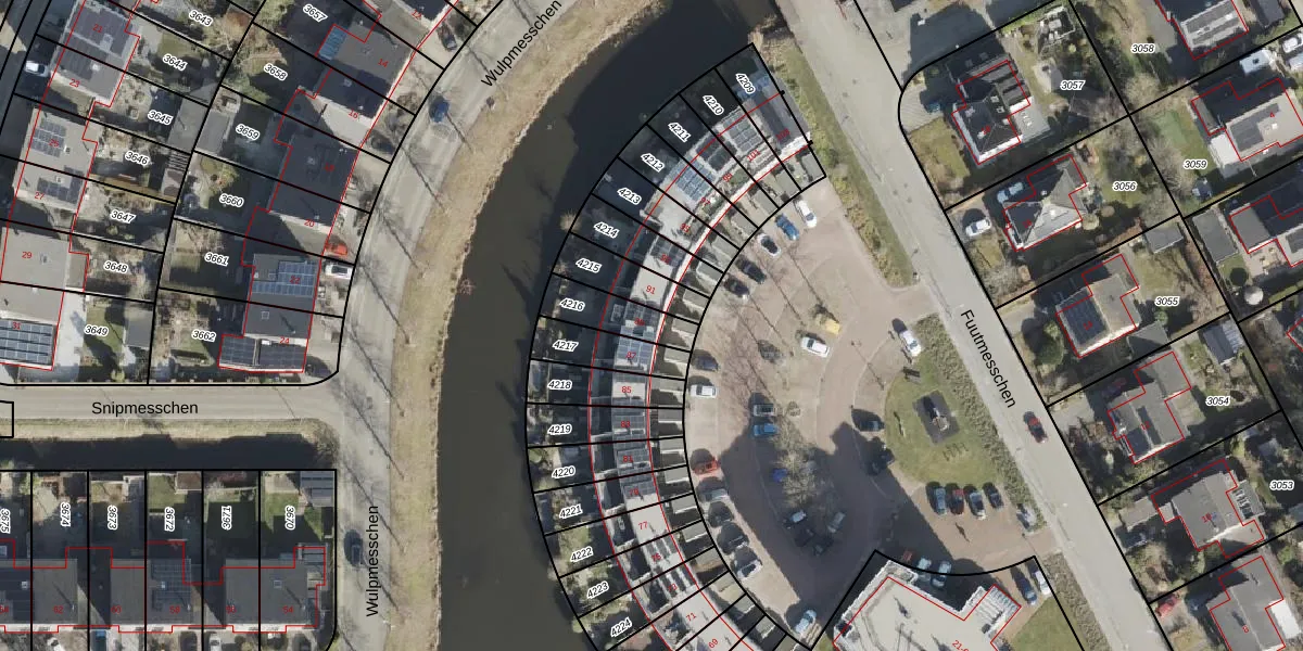Gebruik de zoekbalk of klik op een perceel voor informatie over de adressen binnen dit perceel.
