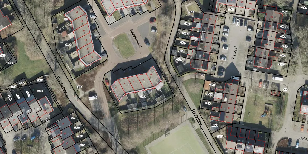 Het perceel waarop Gaasterland 10 staat heeft een oppervlakte van 1048 m². Dit is een zeer groot perceel. De perceeloppervlakte wordt geregistreerd door het Kadaster. Gedetailleerde informatie over de maten van dit perceel kunt u vinden in het rapport Kadastrale kaart met maatvoering van Gaasterland 10.