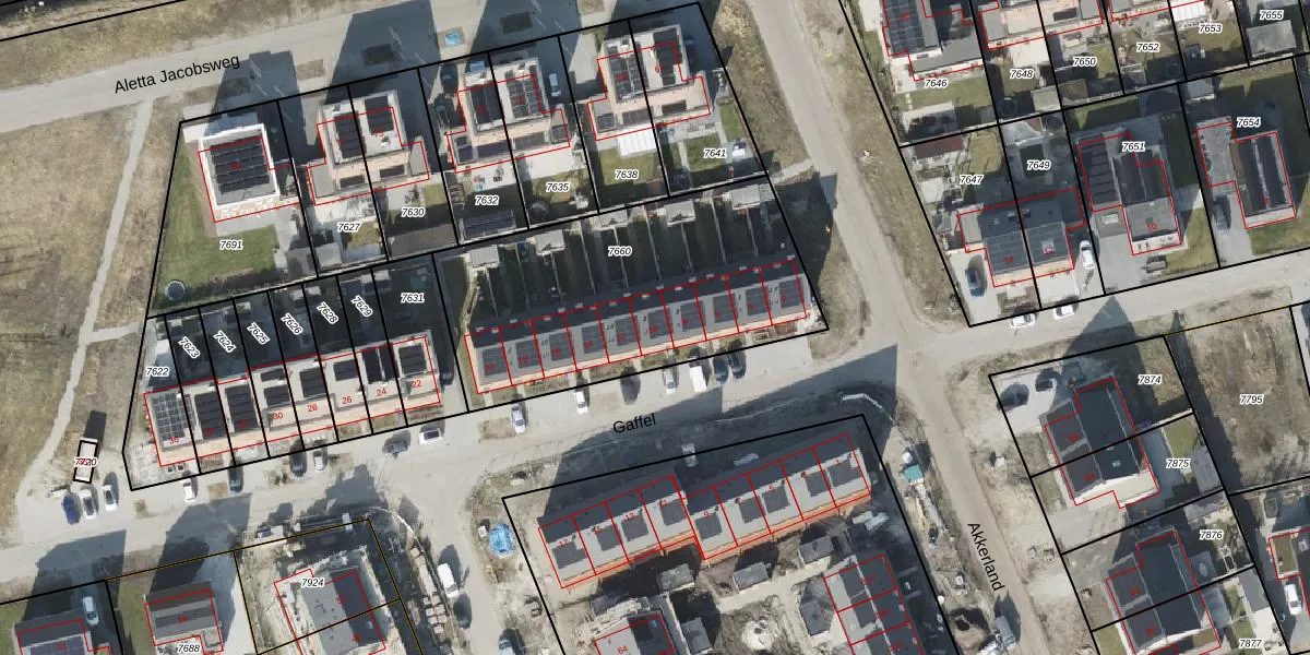 Het perceel waarop Gaffel 10 staat heeft een oppervlakte van 1360 m². Dit is een zeer groot perceel. De perceeloppervlakte wordt geregistreerd door het Kadaster. Gedetailleerde informatie over de maten van dit perceel kunt u vinden in het rapport Kadastrale kaart met maatvoering van Gaffel 10.