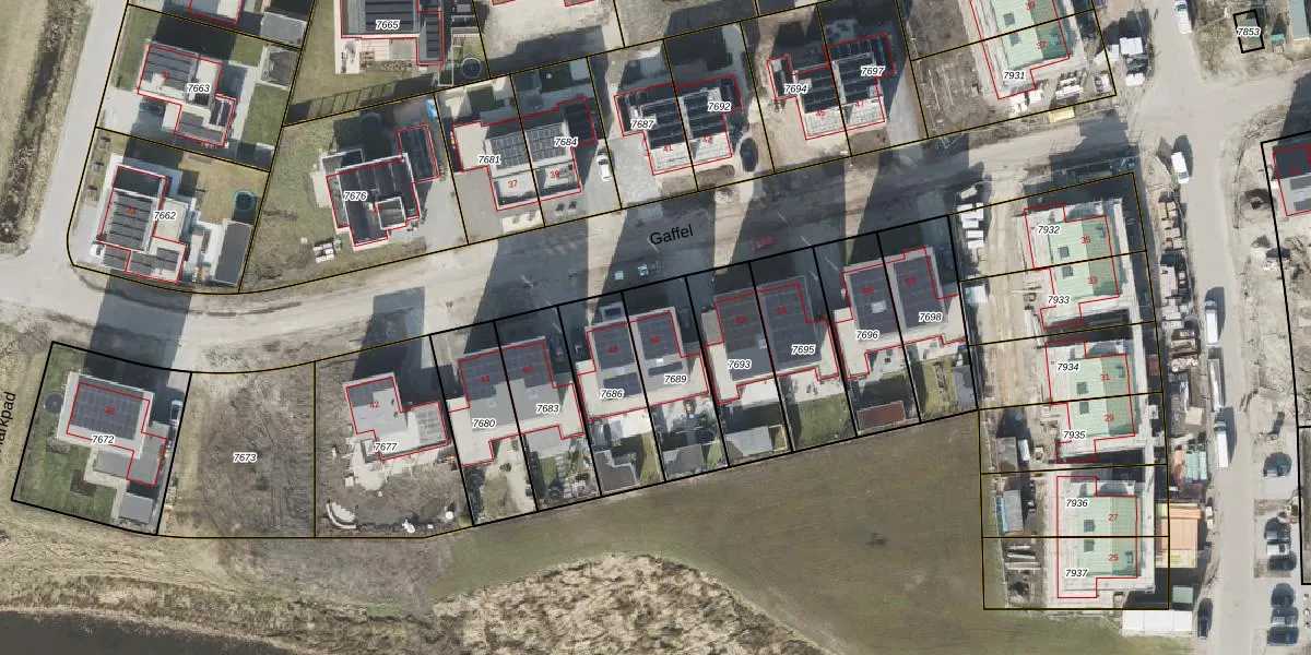 Het perceel waarop Gaffel 50 staat heeft een oppervlakte van 300 m². Dit is een groot perceel. De perceeloppervlakte wordt geregistreerd door het Kadaster. Gedetailleerde informatie over de maten van dit perceel kunt u vinden in het rapport Kadastrale kaart met maatvoering van Gaffel 50.