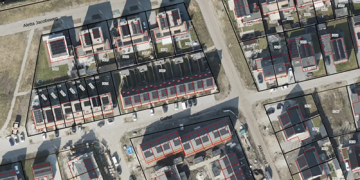 Het perceel waarop Gaffel 8 staat heeft een oppervlakte van 1360 m². Dit is een zeer groot perceel. De perceeloppervlakte wordt geregistreerd door het Kadaster. Gedetailleerde informatie over de maten van dit perceel kunt u vinden in het rapport Kadastrale kaart met maatvoering van Gaffel 8.