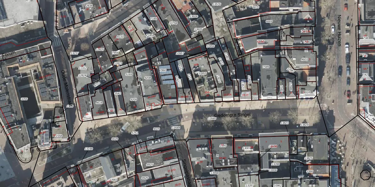 Het perceel waarop Gedempte Singel 28-A staat heeft een oppervlakte van 90 m². Dit is een klein perceel. De perceeloppervlakte wordt geregistreerd door het Kadaster. Gedetailleerde informatie over de maten van dit perceel kunt u vinden in het rapport Kadastrale kaart met maatvoering van Gedempte Singel 28-A.