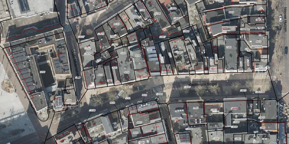 Het perceel waarop Gedempte Singel 34 staat heeft een oppervlakte van 348 m². Dit is een groot perceel. De perceeloppervlakte wordt geregistreerd door het Kadaster. Gedetailleerde informatie over de maten van dit perceel kunt u vinden in het rapport Kadastrale kaart met maatvoering van Gedempte Singel 34.