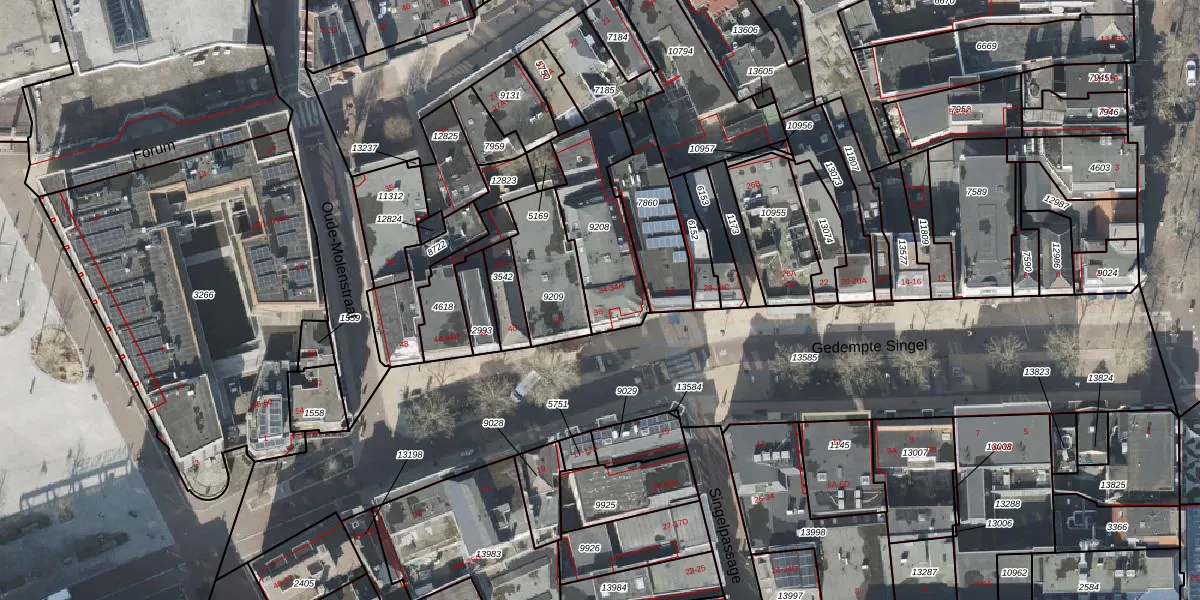 Het perceel waarop Gedempte Singel 34-A staat heeft een oppervlakte van 348 m². Dit is een groot perceel. De perceeloppervlakte wordt geregistreerd door het Kadaster. Gedetailleerde informatie over de maten van dit perceel kunt u vinden in het rapport Kadastrale kaart met maatvoering van Gedempte Singel 34-A.