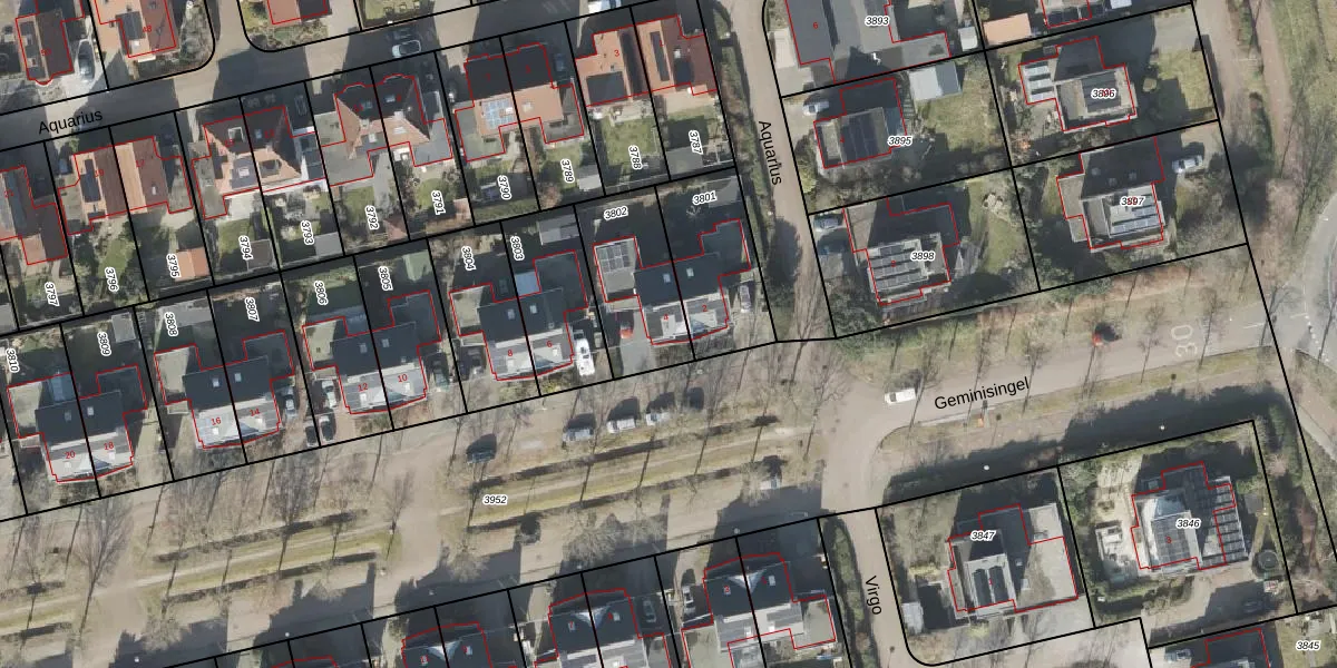 Gebruik de zoekbalk of klik op een perceel voor informatie over de adressen binnen dit perceel.