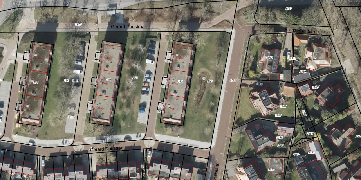 Het perceel waarop Gerard Doustraat 91 staat heeft een oppervlakte van 617 m². Dit is een groot perceel. De perceeloppervlakte wordt geregistreerd door het Kadaster. Gedetailleerde informatie over de maten van dit perceel kunt u vinden in het rapport Kadastrale kaart met maatvoering van Gerard Doustraat 91.