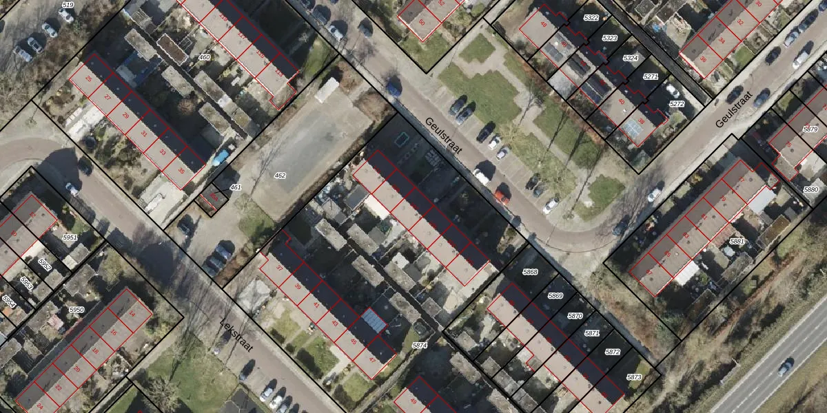 Het perceel waarop Geulstraat 107 staat heeft een oppervlakte van 4090 m². Dit is een zeer groot perceel. De perceeloppervlakte wordt geregistreerd door het Kadaster. Gedetailleerde informatie over de maten van dit perceel kunt u vinden in het rapport Kadastrale kaart met maatvoering van Geulstraat 107.