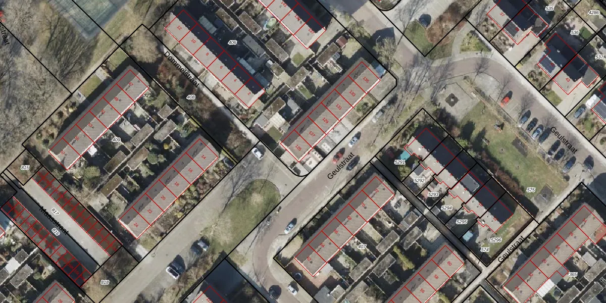 Het perceel waarop Geulstraat 125 staat heeft een oppervlakte van 3261 m². Dit is een zeer groot perceel. De perceeloppervlakte wordt geregistreerd door het Kadaster. Gedetailleerde informatie over de maten van dit perceel kunt u vinden in het rapport Kadastrale kaart met maatvoering van Geulstraat 125.