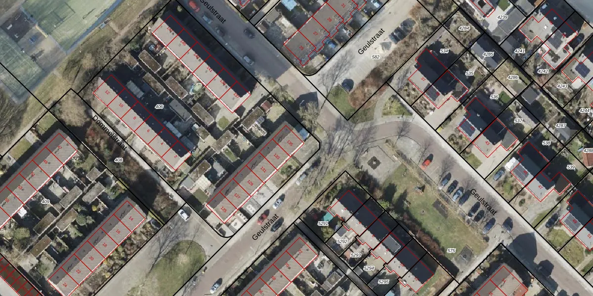Het perceel waarop Geulstraat 135 staat heeft een oppervlakte van 3261 m². Dit is een zeer groot perceel. De perceeloppervlakte wordt geregistreerd door het Kadaster. Gedetailleerde informatie over de maten van dit perceel kunt u vinden in het rapport Kadastrale kaart met maatvoering van Geulstraat 135.