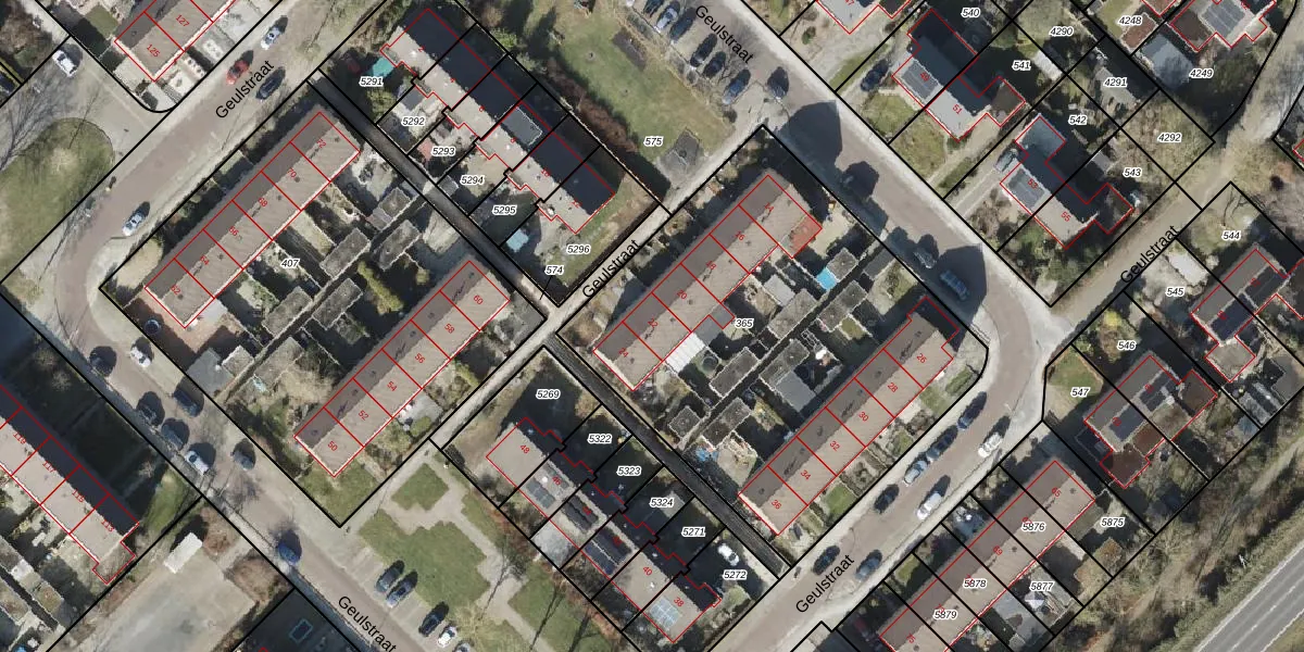 Het perceel waarop Geulstraat 22 staat heeft een oppervlakte van 2302 m². Dit is een zeer groot perceel. De perceeloppervlakte wordt geregistreerd door het Kadaster. Gedetailleerde informatie over de maten van dit perceel kunt u vinden in het rapport Kadastrale kaart met maatvoering van Geulstraat 22.