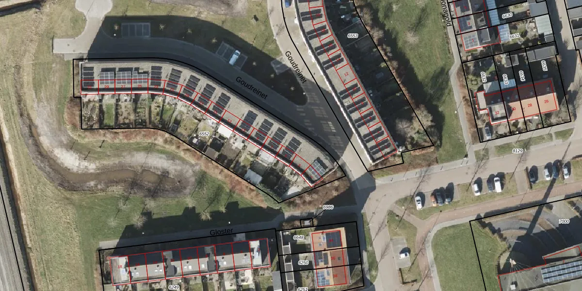 Het perceel waarop Goudreinet 5 staat heeft een oppervlakte van 2201 m². Dit is een zeer groot perceel. De perceeloppervlakte wordt geregistreerd door het Kadaster. Gedetailleerde informatie over de maten van dit perceel kunt u vinden in het rapport Kadastrale kaart met maatvoering van Goudreinet 5.