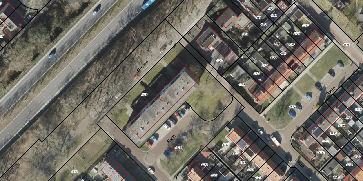 Het perceel waarop Gouwe 100 staat heeft een oppervlakte van 1842 m². Dit is een zeer groot perceel. De perceeloppervlakte wordt geregistreerd door het Kadaster. Gedetailleerde informatie over de maten van dit perceel kunt u vinden in het rapport Kadastrale kaart met maatvoering van Gouwe 100.