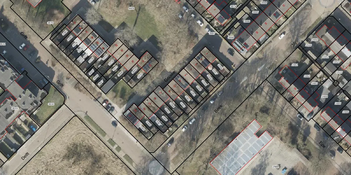 Gebruik de zoekbalk of klik op een perceel voor informatie over de adressen binnen dit perceel.