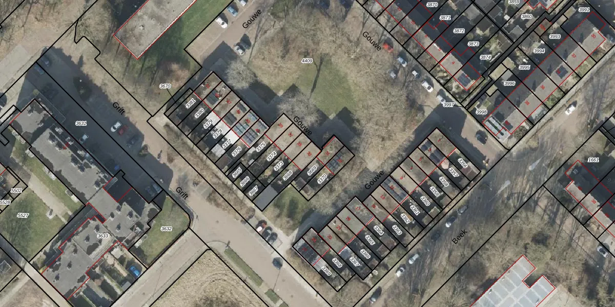 Gebruik de zoekbalk of klik op een perceel voor informatie over de adressen binnen dit perceel.