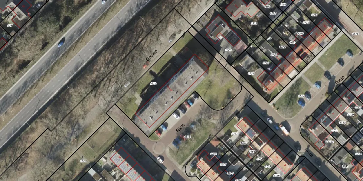 Het perceel waarop Gouwe 84 staat heeft een oppervlakte van 1842 m². Dit is een zeer groot perceel. De perceeloppervlakte wordt geregistreerd door het Kadaster. Gedetailleerde informatie over de maten van dit perceel kunt u vinden in het rapport Kadastrale kaart met maatvoering van Gouwe 84.