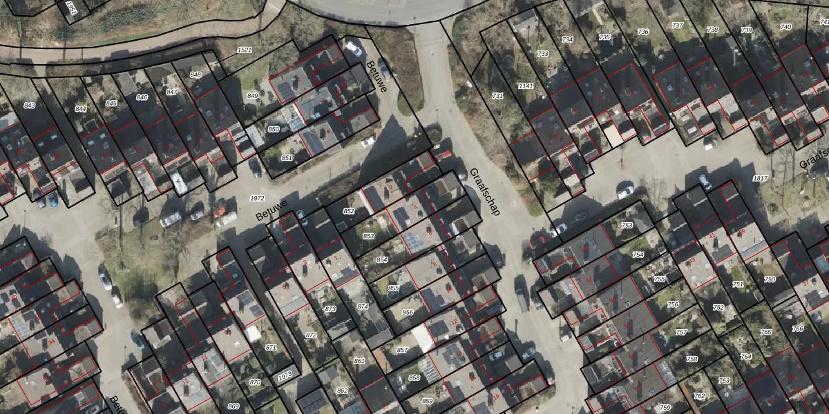 Gebruik de zoekbalk of klik op een perceel voor informatie over de adressen binnen dit perceel.