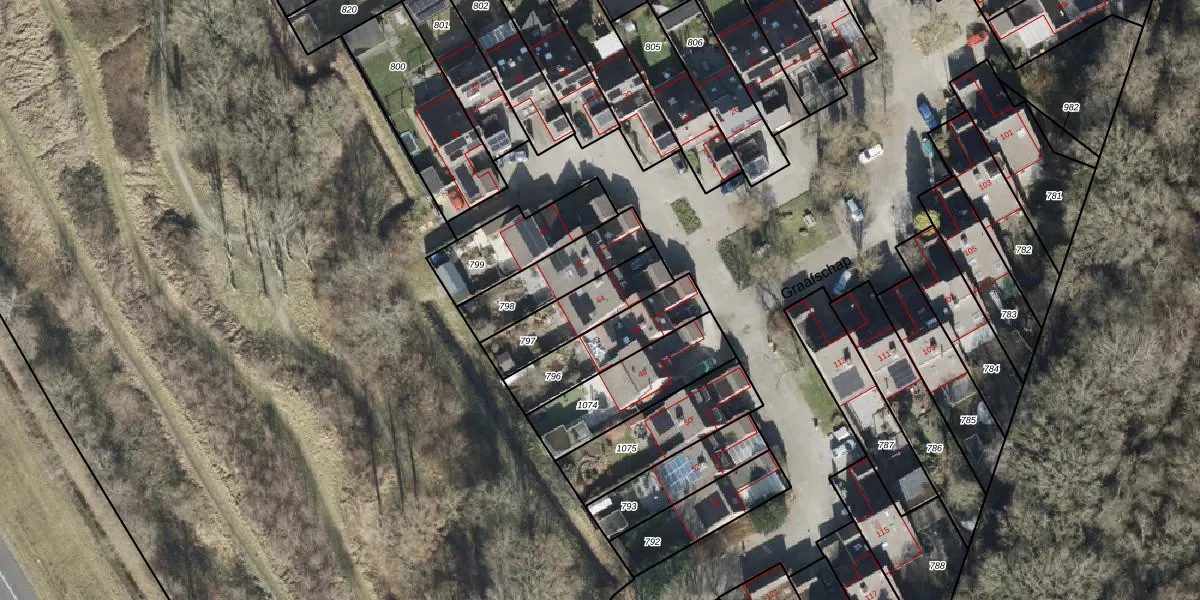 Het perceel waarop Graafschap 44 staat heeft een oppervlakte van 238 m². Dit is een middelgroot perceel. De perceeloppervlakte wordt geregistreerd door het Kadaster. Gedetailleerde informatie over de maten van dit perceel kunt u vinden in het rapport Kadastrale kaart met maatvoering van Graafschap 44.