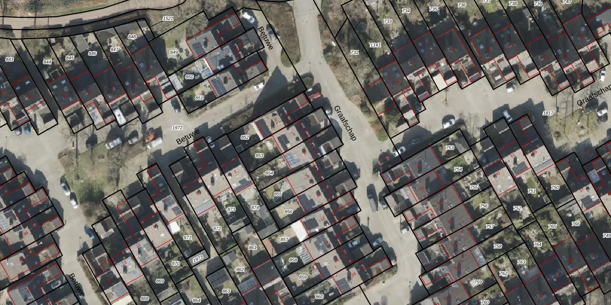 Gebruik de zoekbalk of klik op een perceel voor informatie over de adressen binnen dit perceel.