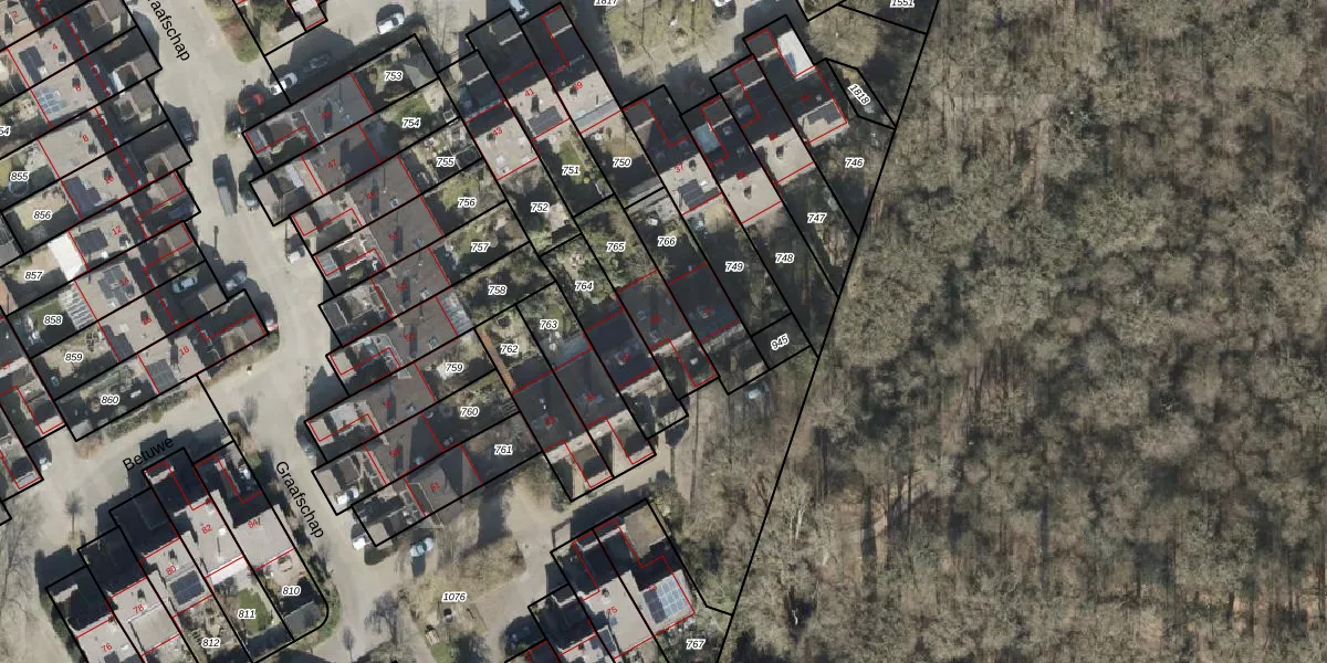 Het perceel waarop Graafschap 69 staat heeft een oppervlakte van 227 m². Dit is een middelgroot perceel. De perceeloppervlakte wordt geregistreerd door het Kadaster. Gedetailleerde informatie over de maten van dit perceel kunt u vinden in het rapport Kadastrale kaart met maatvoering van Graafschap 69.