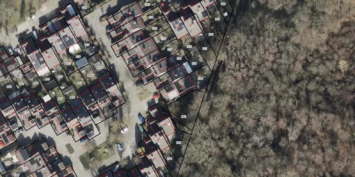 Het perceel waarop Graafschap 99 staat heeft een oppervlakte van 295 m². Dit is een middelgroot perceel. De perceeloppervlakte wordt geregistreerd door het Kadaster. Gedetailleerde informatie over de maten van dit perceel kunt u vinden in het rapport Kadastrale kaart met maatvoering van Graafschap 99.