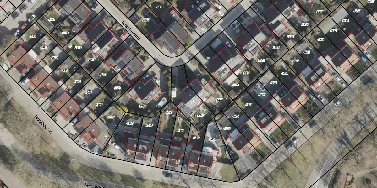 Gebruik de zoekbalk of klik op een perceel voor informatie over de adressen binnen dit perceel.