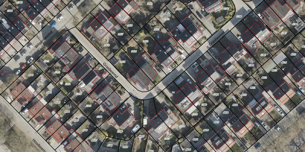 Gebruik de zoekbalk of klik op een perceel voor informatie over de adressen binnen dit perceel.