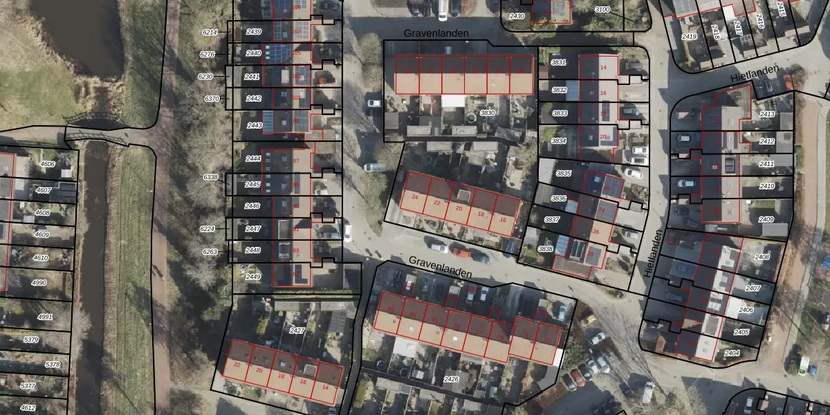 Gravenlanden 24 is gelegen op kadastraal perceel ASN00X3830. Deze kadastrale aanduiding is uniek en wordt gebruikt door het Kadaster om eigendomsrechten en andere zakelijke rechten vast te leggen. Het perceel maakt onderdeel uit van de kadastrale gemeente Assen.