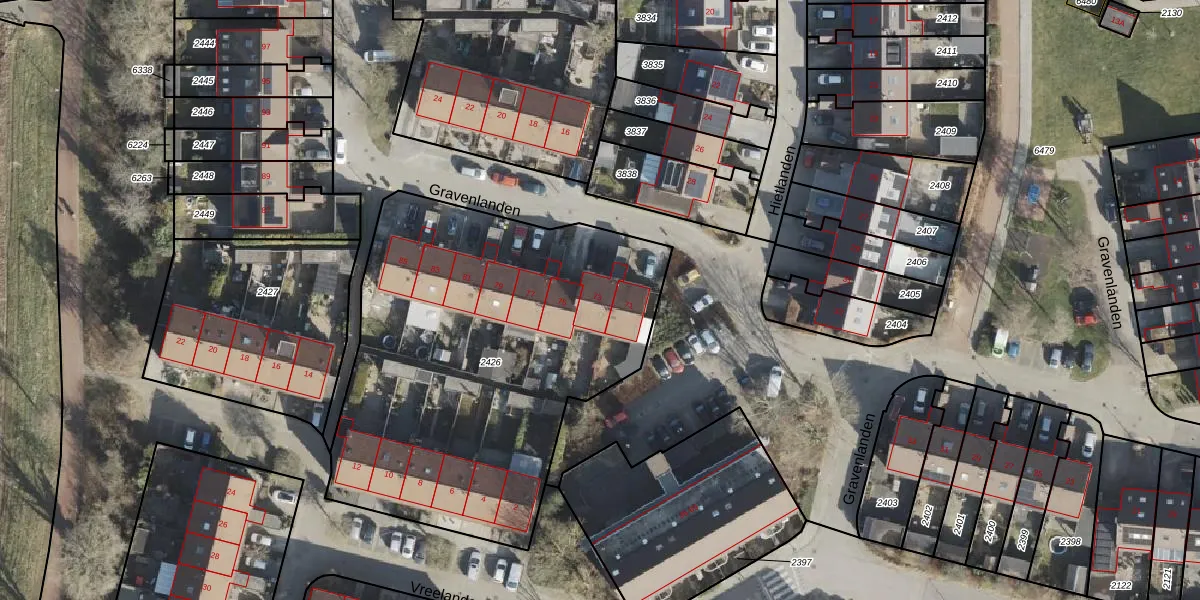 Het perceel waarop Gravenlanden 73 staat heeft een oppervlakte van 2219 m². Dit is een zeer groot perceel. De perceeloppervlakte wordt geregistreerd door het Kadaster. Gedetailleerde informatie over de maten van dit perceel kunt u vinden in het rapport Kadastrale kaart met maatvoering van Gravenlanden 73.