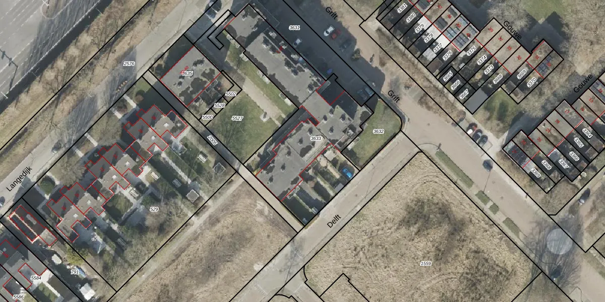Het perceel waarop Grift 33 staat heeft een oppervlakte van 1544 m². Dit is een zeer groot perceel. De perceeloppervlakte wordt geregistreerd door het Kadaster. Gedetailleerde informatie over de maten van dit perceel kunt u vinden in het rapport Kadastrale kaart met maatvoering van Grift 33.