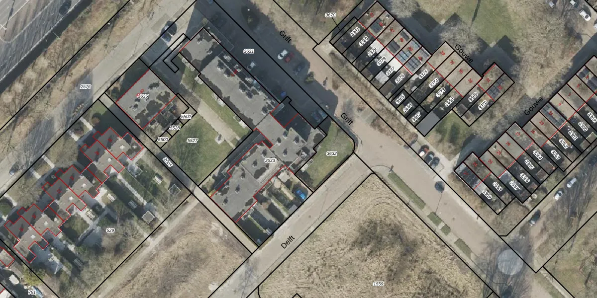 Het perceel waarop Grift 43 staat heeft een oppervlakte van 1544 m². Dit is een zeer groot perceel. De perceeloppervlakte wordt geregistreerd door het Kadaster. Gedetailleerde informatie over de maten van dit perceel kunt u vinden in het rapport Kadastrale kaart met maatvoering van Grift 43.