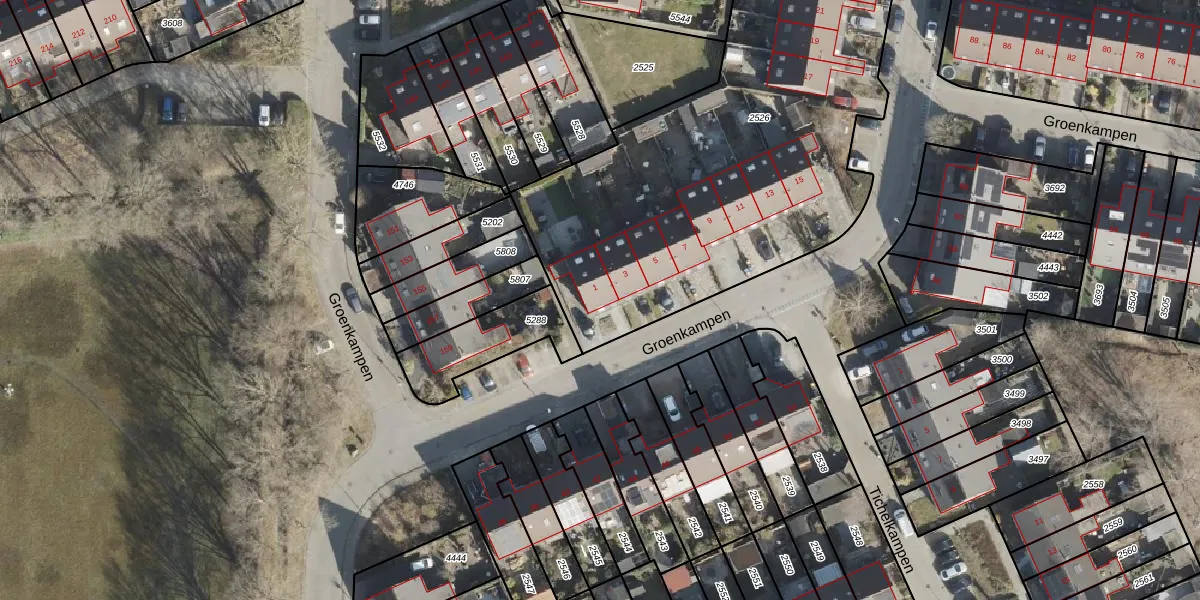 Het perceel waarop Groenkampen 1 staat heeft een oppervlakte van 2502 m². Dit is een zeer groot perceel. De perceeloppervlakte wordt geregistreerd door het Kadaster. Gedetailleerde informatie over de maten van dit perceel kunt u vinden in het rapport Kadastrale kaart met maatvoering van Groenkampen 1.