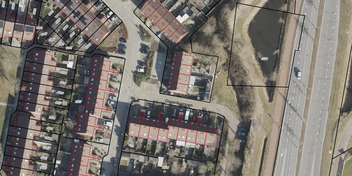 Het perceel waarop Groenkampen 108 staat heeft een oppervlakte van 2880 m². Dit is een zeer groot perceel. De perceeloppervlakte wordt geregistreerd door het Kadaster. Gedetailleerde informatie over de maten van dit perceel kunt u vinden in het rapport Kadastrale kaart met maatvoering van Groenkampen 108.
