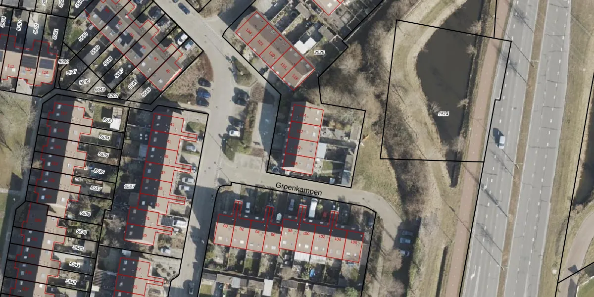 Het perceel waarop Groenkampen 110 staat heeft een oppervlakte van 2880 m². Dit is een zeer groot perceel. De perceeloppervlakte wordt geregistreerd door het Kadaster. Gedetailleerde informatie over de maten van dit perceel kunt u vinden in het rapport Kadastrale kaart met maatvoering van Groenkampen 110.