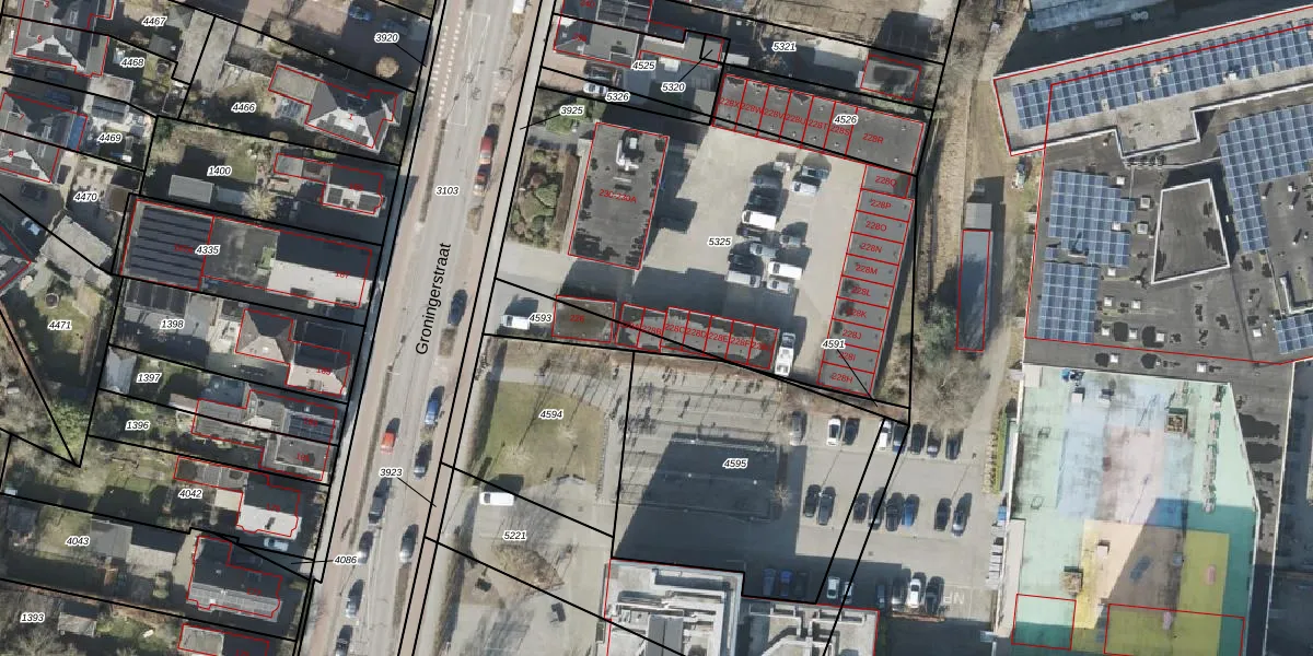 Groningerstraat 228-B is gelegen op kadastraal perceel ASN00T5325. Deze kadastrale aanduiding is uniek en wordt gebruikt door het Kadaster om eigendomsrechten en andere zakelijke rechten vast te leggen. Het perceel maakt onderdeel uit van de kadastrale gemeente Assen.