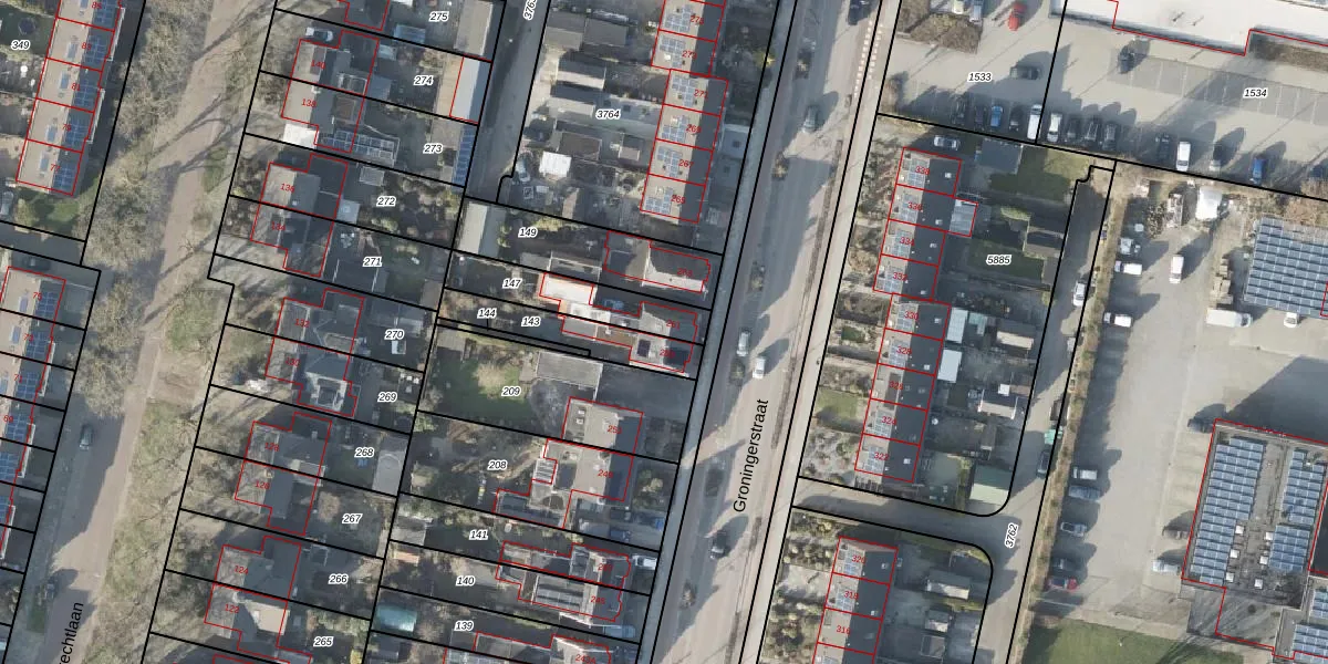 Het perceel waarop Groningerstraat 261 staat heeft een oppervlakte van 224 m². Dit is een middelgroot perceel. De perceeloppervlakte wordt geregistreerd door het Kadaster. Gedetailleerde informatie over de maten van dit perceel kunt u vinden in het rapport Kadastrale kaart met maatvoering van Groningerstraat 261.