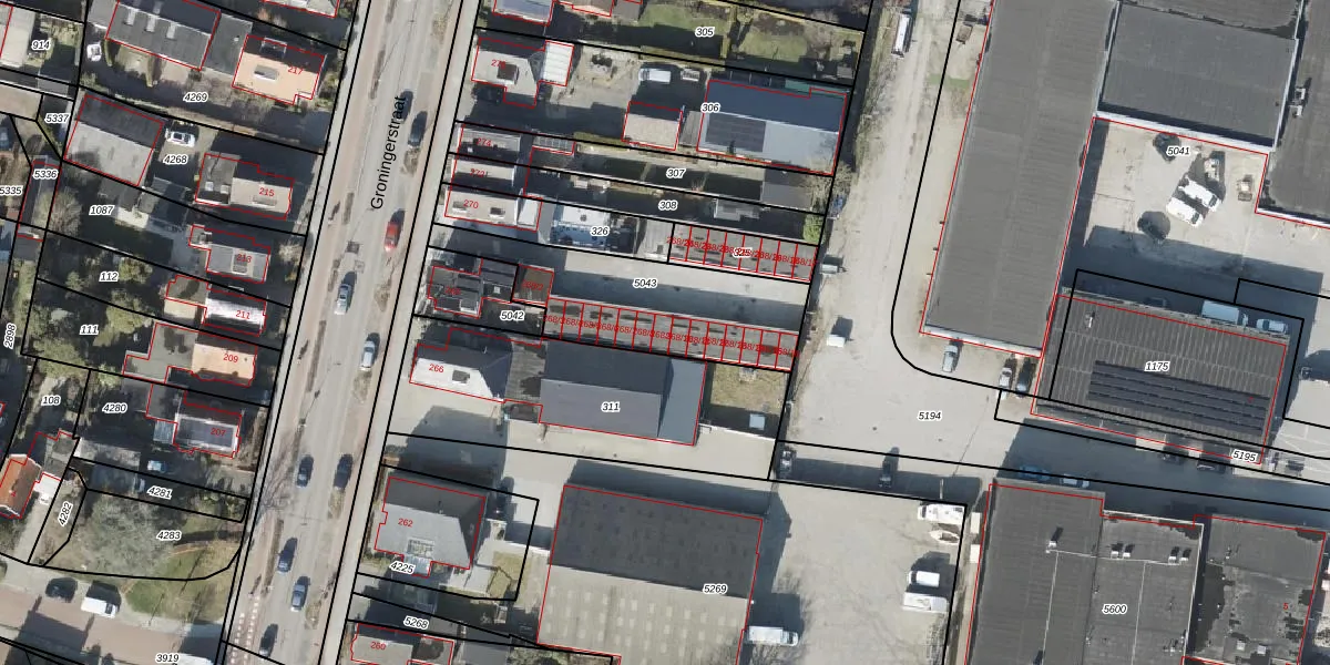 Het perceel waarop Groningerstraat 268-9 staat heeft een oppervlakte van 627 m². Dit is een groot perceel. De perceeloppervlakte wordt geregistreerd door het Kadaster. Gedetailleerde informatie over de maten van dit perceel kunt u vinden in het rapport Kadastrale kaart met maatvoering van Groningerstraat 268-9.