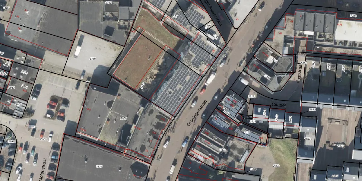 Groningerstraat 27-105 is gelegen op kadastraal perceel ASN00S1779. Deze kadastrale aanduiding is uniek en wordt gebruikt door het Kadaster om eigendomsrechten en andere zakelijke rechten vast te leggen. Het perceel maakt onderdeel uit van de kadastrale gemeente Assen.