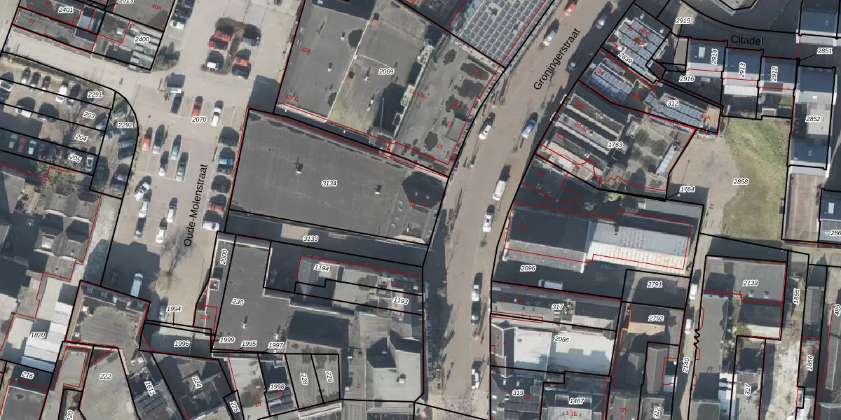 Het perceel waarop Groningerstraat 9-A staat heeft een oppervlakte van 1053 m². Dit is een zeer groot perceel. De perceeloppervlakte wordt geregistreerd door het Kadaster. Gedetailleerde informatie over de maten van dit perceel kunt u vinden in het rapport Kadastrale kaart met maatvoering van Groningerstraat 9-A.