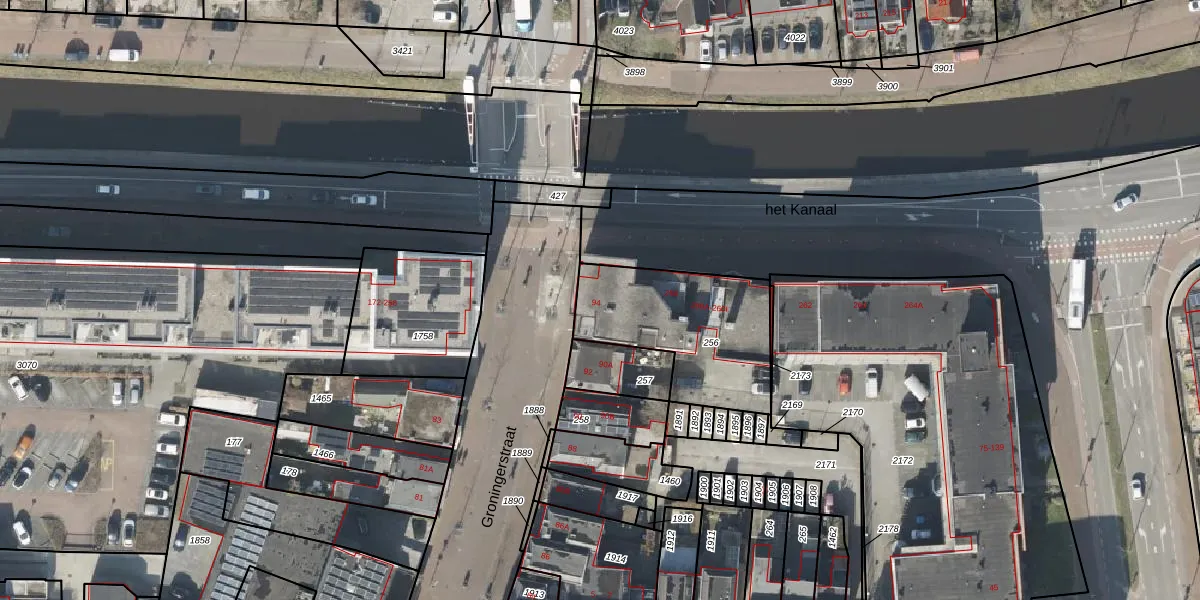 Groningerstraat 94 is gelegen op kadastraal perceel ASN00S256. Deze kadastrale aanduiding is uniek en wordt gebruikt door het Kadaster om eigendomsrechten en andere zakelijke rechten vast te leggen. Het perceel maakt onderdeel uit van de kadastrale gemeente Assen.
