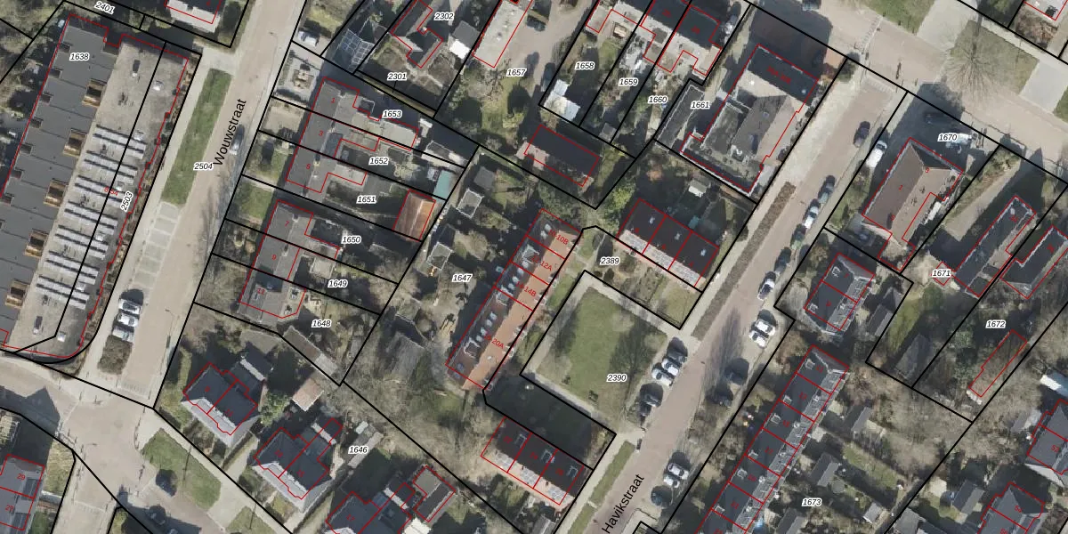 Het perceel waarop Havikstraat 12-A staat heeft een oppervlakte van 2160 m². Dit is een zeer groot perceel. De perceeloppervlakte wordt geregistreerd door het Kadaster. Gedetailleerde informatie over de maten van dit perceel kunt u vinden in het rapport Kadastrale kaart met maatvoering van Havikstraat 12-A.