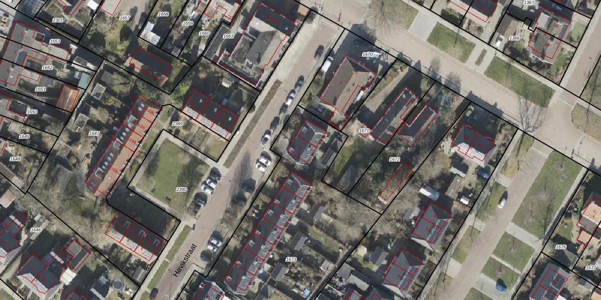 Het perceel waarop Havikstraat 9 staat heeft een oppervlakte van 2755 m². Dit is een zeer groot perceel. De perceeloppervlakte wordt geregistreerd door het Kadaster. Gedetailleerde informatie over de maten van dit perceel kunt u vinden in het rapport Kadastrale kaart met maatvoering van Havikstraat 9.
