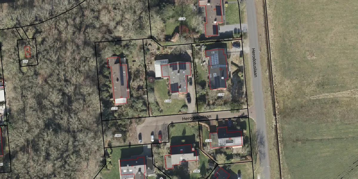 Het perceel waarop Herodotuslaan 41 staat heeft een oppervlakte van 1090 m². Dit is een zeer groot perceel. De perceeloppervlakte wordt geregistreerd door het Kadaster. Gedetailleerde informatie over de maten van dit perceel kunt u vinden in het rapport Kadastrale kaart met maatvoering van Herodotuslaan 41.