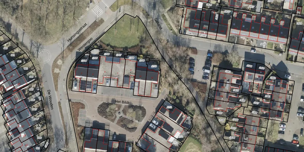 Gebruik de zoekbalk of klik op een perceel voor informatie over de adressen binnen dit perceel.